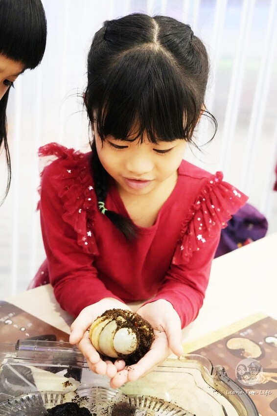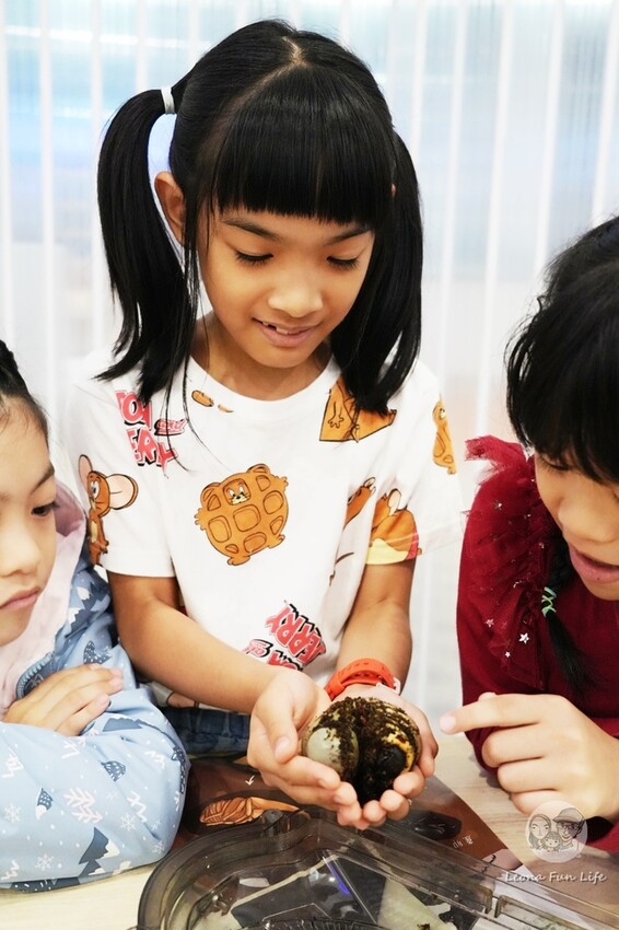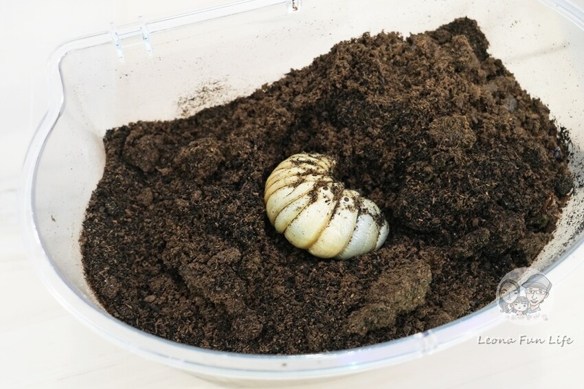 肥美的雞母蟲在小朋友的手上看起來更巨大。