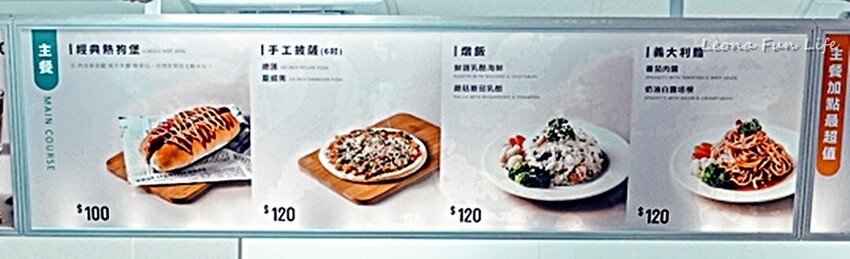 經典熱狗堡$100、手工披薩$120(總匯、燉飯/義大利麵$120,