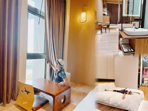 1. 高級體驗:以安妮王一家人入住十宜客房,不僅擁有2張超大家庭式睡床設計,而且色調高雅,空間舒適寬敞,明亮的大面觀景窗,可以看到早晨與夜晚的鹿港古蹟之美,實屬難得。