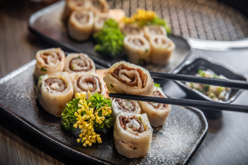 川三手作捲餅,捲餅的料會根據您點的套餐種類不同,今天我們點的是和牛,所以裡面的肉就是和牛,是不是超酷的,第一次吃到和牛捲餅,餅皮外酥內軟還帶有彈性,加上油脂香氣口感軟嫩的和牛,如果想吃酥一點也可以烤一下再吃