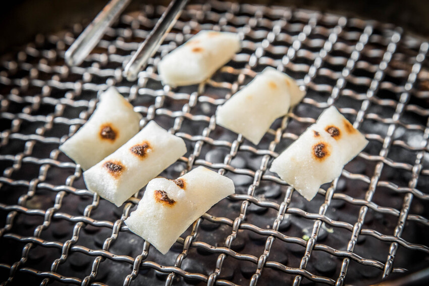 日式麻糬是用烤的,烤麻糬本身就是一個相當療癒的一件事,看著麻糬膨脹消風又膨脹,還蠻開心的,烤熱麻糬沾煉乳花生糖粉,好吃!