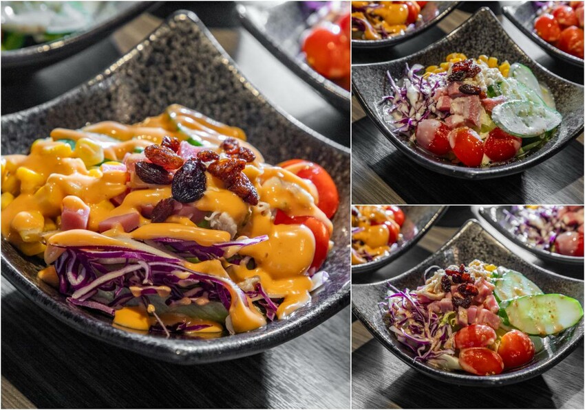野菜沙拉(千島、胡麻、凱薩),野菜沙拉有三種醬料可以選擇,三人套餐就可以選三種,搭配醬料的味道與爽脆的生菜很是開胃呢,也很適合在吃燒肉之間串場,相當解膩