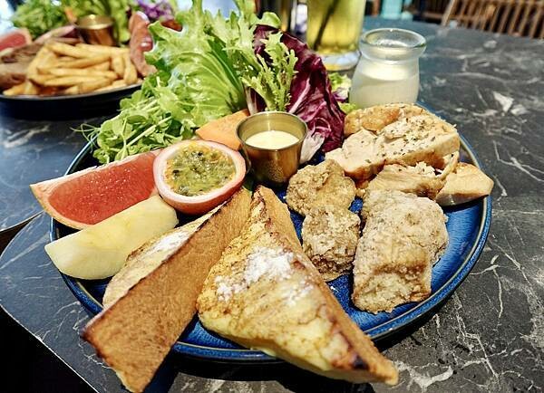 香煎低脂雞胸肉,不柴,我們三人拿分享盤分著吃,一起分享食物的感受,香煎低脂雞胸肉,出乎我們的想像,味道很健康好吃,生菜沙拉蔬菜原味很甜,搭配沙拉醬也好吃,層次口感,還有法式吐司,健康又營養。