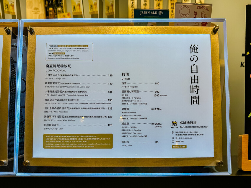 高雄啤酒屋 takao beer house菜單