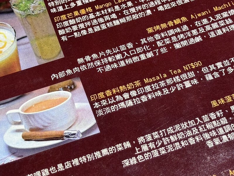 因為第一次來完全不知道要點什麼,於是請親切到不行會說中文的印度小哥推薦。首先是我懷念東京「タンドールバル カマルプール」點的拉茶,上來時有一絲懷念的香氣,同時附了一根肉桂棒。第一口是好好喝,雖然我覺得印度香料可以再多一點,但那適度的奶茶香和甜度,還是讓我在第一道料理還沒上來時就喝了一個碗底朝天,於是又追加了一杯,最終我居然喝了三杯才罷手....。