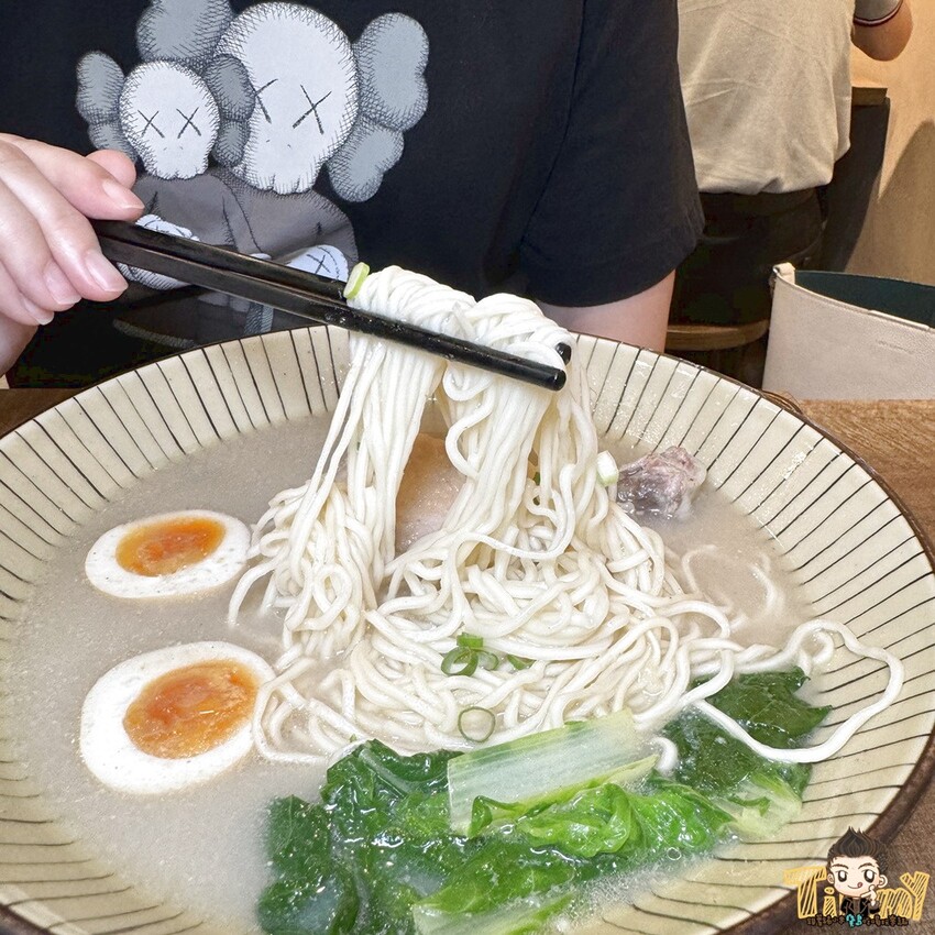 今天小結巴想要喝雞湯,於是點了燉雞麵/細麵 140元+糖心蛋30元,一上桌就能聞到雞湯香氣