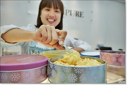 充滿濃濃鮮奶油的生乳包,裡頭添加了不少新鮮芒果顆粒,原料部分,選用北海道雪印生乳製作生乳包,濃郁的奶香不會太膩,加上日本旭製麵粉的絕佳口感,質地輕盈又不失嚼勁。而其中的奶油則是來自法國AOP邦菩禮發酵奶油,選用最好的食材,讓大人小孩都能安心且無負擔的享用。