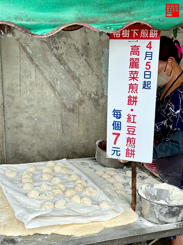 火雲掌伯豆標只有賣高麗菜煎餅和紅豆煎餅兩個品項,整個攤車共有3個員工,除了火雲掌伯本人之外,還有一位拿鏟子幫翻煎餅及收錢的阿姨,以及一位負責包餡料的阿姨!(應該都是親人,我沒有再多問)