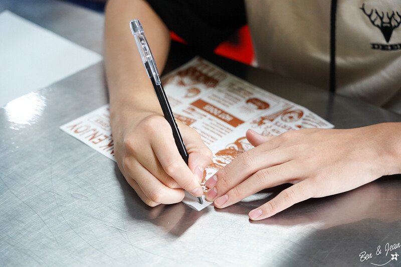 第一步,先寫上自己的名字,這也很重要啊,不然全部的麵包一起進爐烘烤,絕對分不清是誰的XD