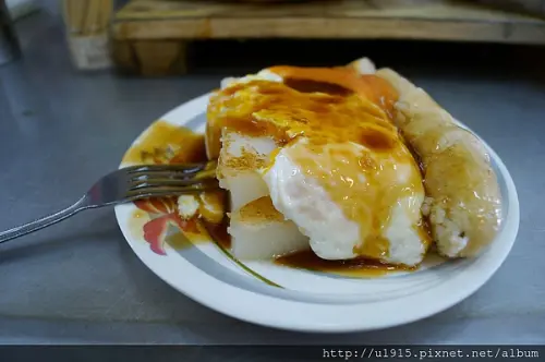 自製的菜頭粿,沾醬後是最樸實的美味!