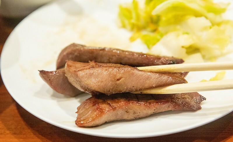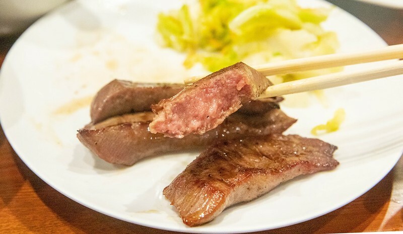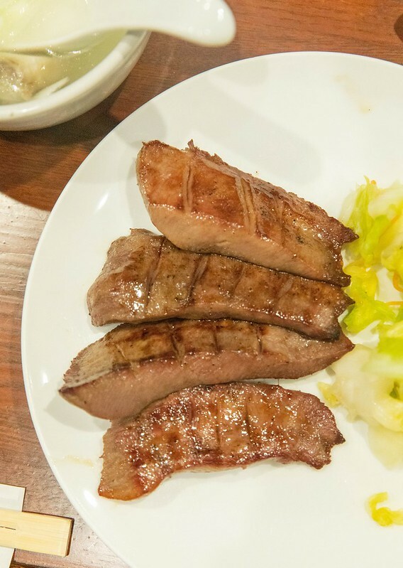 如果你常吃仙台牛舌、對仙台牛舌也有一定的了解,那麼應該知道仙台牛舌的基本就是像這樣的牛舌定食套餐,也有所謂的1.5倍牛舌的套餐(6片牛舌),比較有意思的是這裡也有5片的選擇。除了用炭火燒烤的牛舌外,高麗醃漬的配菜、白飯加牛骨湯也幾乎是大同小異。