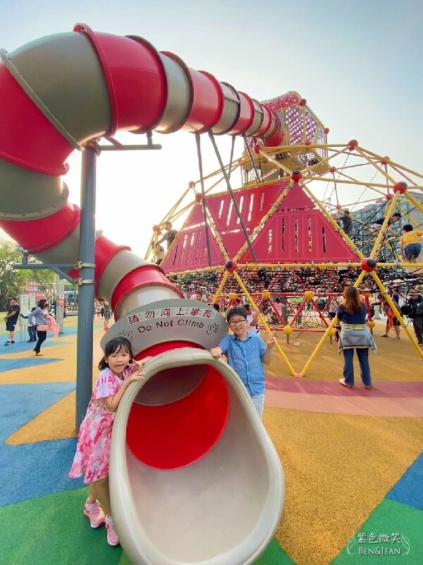 上面可以看到公園全貌,然後再從15公尺長溜滑梯滑下來,非常過癮。