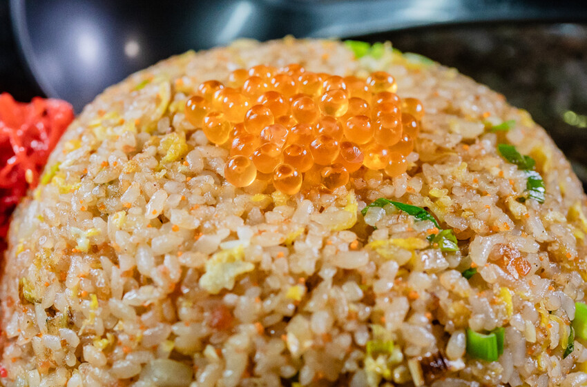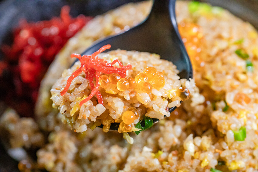 ▲▼粒粒分明的炒飯,搭配新鮮鮭魚,帶著鮭魚的鮮香味,口感豐富、鹹香適口,再搭配著鮭魚卵的台式的「豆棗」,感覺很有趣耶,而且口感超豐富。