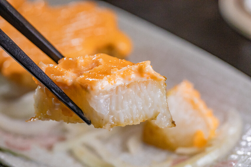 ▲▼使用的是鱸魚,肉質鮮嫩,先炸後烤,如此魚肉能外皮酥脆、內裡保持嫩滑,還帶著炸過後的香氣。