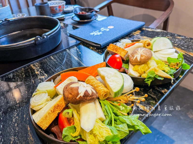 這裡的菜盤都是以天然食材取代一般加工火鍋料,有香菇、筍子、皇宮菜、絲瓜等當季新鮮蔬菜,不僅讓人吃得安心,口感也更豐富多變化!