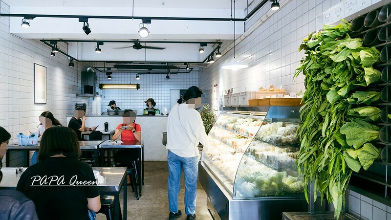 店內的空間環境很簡單,選用街邊麵店用餐桌椅,想吃什麼拎著籃子自己配一籃(碗)