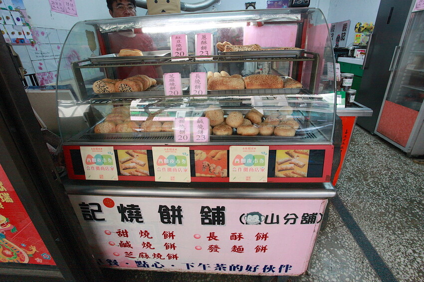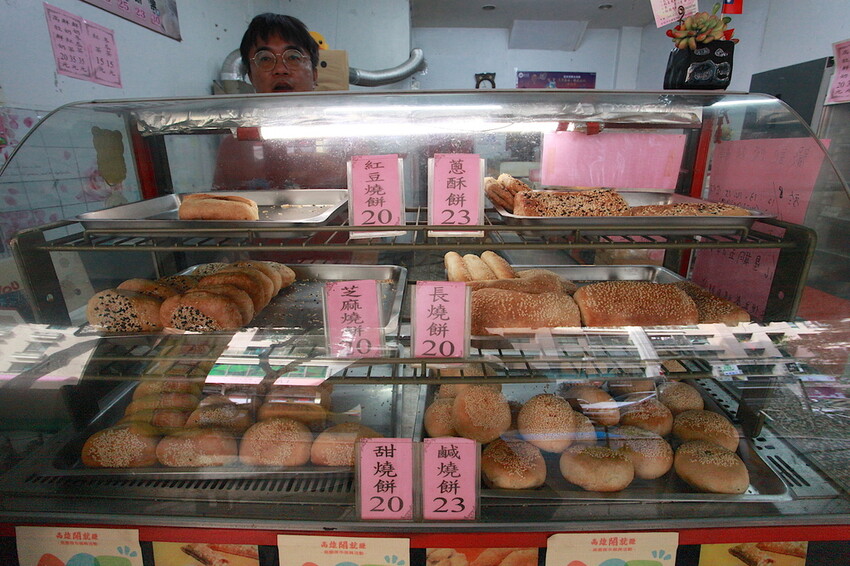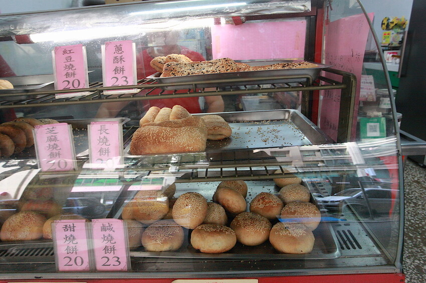 這燒餅大概有長燒餅20元、甜燒餅20元、芝麻燒餅20元、紅豆燒餅20元、鹹燒餅23元及蔥酥餅23元等。