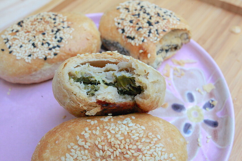 這鹹燒餅是蔥肉內餡酥脆真好吃