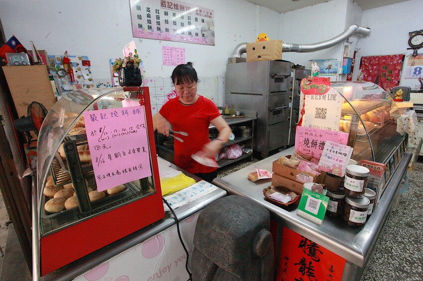 這間「嚴記燒餅舖」創立於日據時代超過60年歷史,創辦人嚴師傅選在左營第二公有市場創店,因故才把燒餅店轉讓給別人來經營,目前這間店面傳承親戚繼續經營,第三代經者是一對中年的夫妻,老闆說創辦人嚴師傅已經離世了,這間「嚴記燒餅舖」就在熱鬧果貿社區裡面,小高就利用平日早上時段前來購買,走到店門口就聞到濃濃燒餅的香氣,走入店內發現燒餅種類很多定價合理,品嚐覺得很美味值得推薦給您