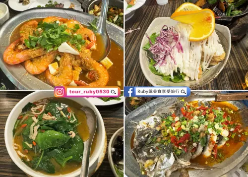 端上桌時,有被蝦仁煎的外表給嚇到,也太大盤,外層麵糊比較薄吃起來更像酥香的煎餅,中間的部分比較厚實,有麵漿的口感,蝦仁還放10隻,整個很大器。