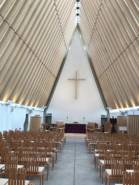 「紙教堂」由以設計災後應變建築而聞名的日本紙板建築大師坂茂(Shigeru Ban)所設計,可容納700人的臨時教堂,預計可使用50年(在南投埔里的紙教堂也是由坂茂設計)