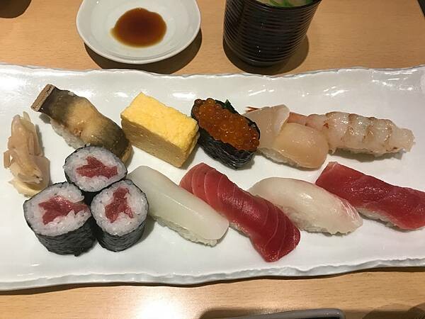 在公園裡走了大約兩小時,雨勢越來越大只好做罷搭車回東京去,超過午餐時間,回到東京趕緊找了間很不錯cp值高的壽司店吃好吃的壽司~壽司清