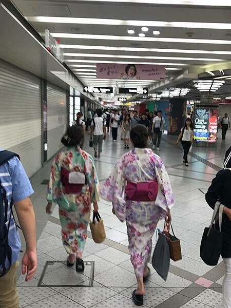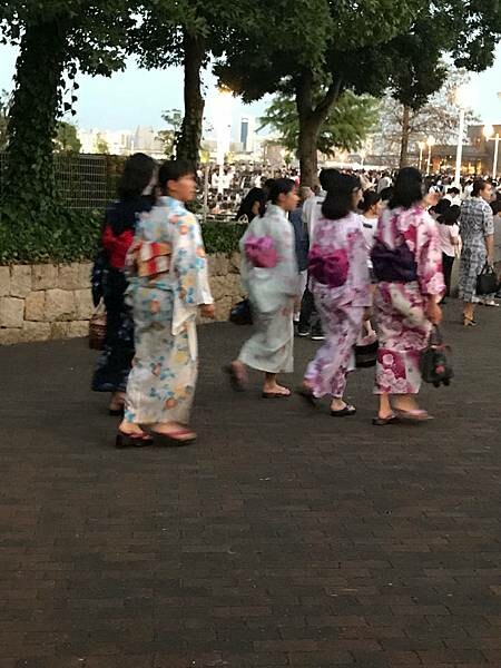 在這一天女孩子们挽起发髻,换上浴衣,男生們也會換上男生浴衣,走在街上。
