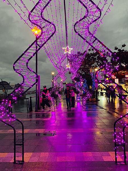 離開了3D彩繪階梯,就向靠著淡水河的行徑一路走回靠近捷運站價錢平價出菜快放便的黑殿吃個晚餐。可能是剛過聖誕節和元旦吧!一路上都有些燈飾可以停下拍拍照。