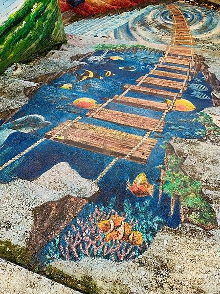 回程我是直接從紅毛城走路回到淡水捷運站,路上在星巴克買了杯熱茶休息看看細雨下的淡水河,之後再繼續逛淡水老街,途中會經過位於福佑宮旁小巷的淡水3D意象彩繪階梯,可以停下拍個照。