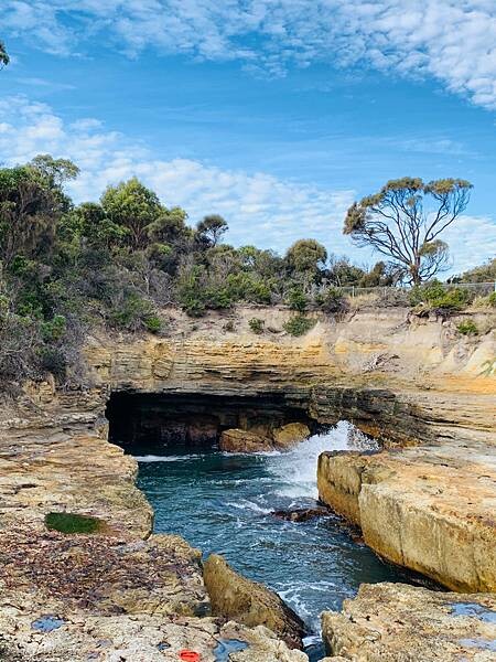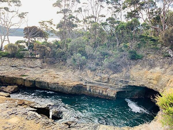 網上資料說亞瑟港很美是必遊景點但公主不喜歡這種有毛毛陰沉感覺的地方,所以我們并沒有買門票進去,就只是路過,延著海岸線停了幾個景點拍拍照走走,這樣子也花了我們一下午的時間,大家也真會拍照和享受著塔斯曼半島的大太陽和明媚風光。