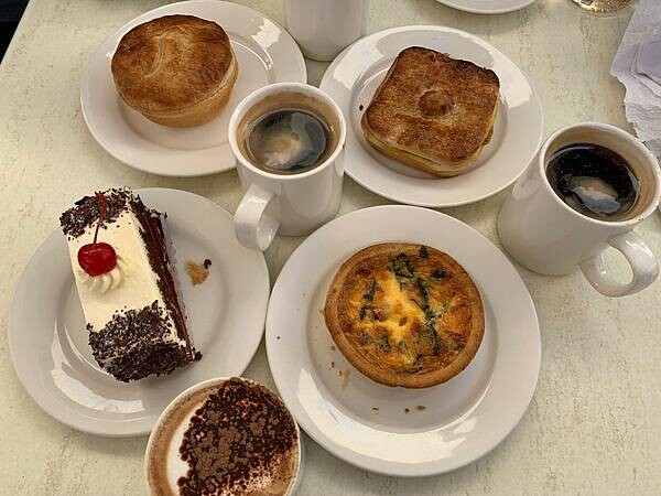 我們在里奇蒙小鎮買了幾個蘑菇雞肉派、海鮮派坐在陽光下吃派喝咖啡休息了一下。