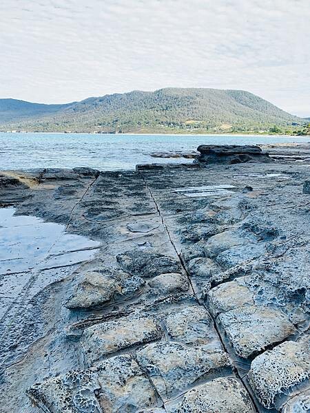在塔斯曼半島的海岸線第一個景點:棋盤石 Tassellated Pavement