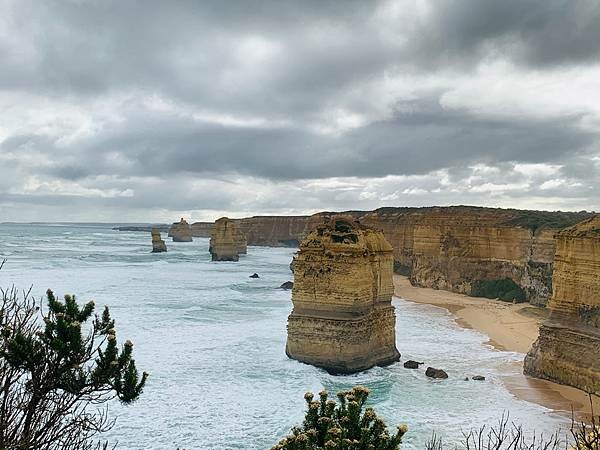 再次來到這世界上有名的十二門徒,探視著這天然景觀,澳洲最壯麗的海岸線奇景。一日遊裡,我們就隨意的遊走了鷹石、大洋路紀念拱橋Memorial Arch、午餐就在阿波羅灣Apollo Bay享用(其實多數人都會選擇Apollo Bay做爲午餐休息站,這裡有一整排的餐廳多樣化的異國料理或西餐供選擇)、吉布森臺階(Gibson Steps)、十二門徒(The Twelves Apostles)、在洛克阿德峽谷(Loch Ard Gorge)可以了解到當年沉船歷史、地質和海岸生態狀況,此峽谷是根據1878年的Loch Ard號船難被命名的,一定要從梯級走下去站在沙灘上平行拍照才美、之後的景點還有The Arch、以及倫敦橋London Bridge。