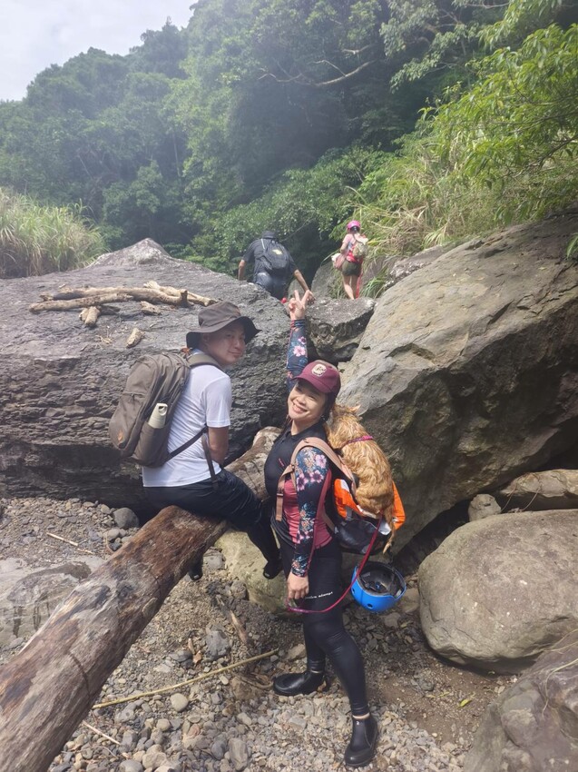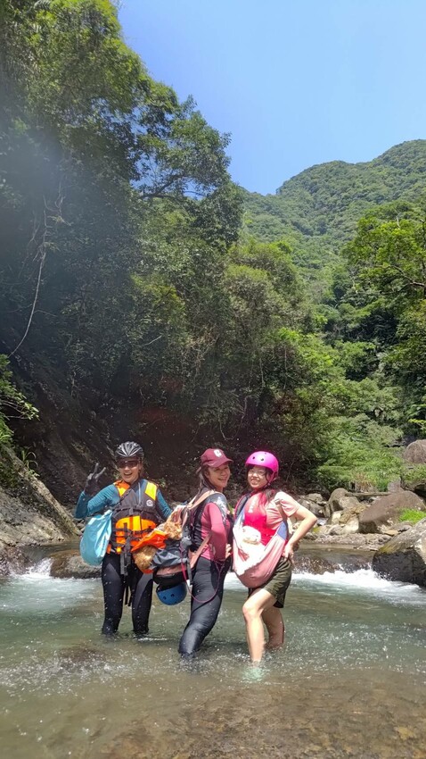 【新北.烏來】初階版溯溪行程。加九寮溪-天然滑水道好好玩~帶著貓咪去溯溪
