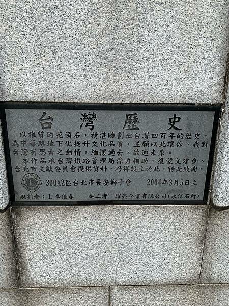 公主出了捷運站2號口直走過馬路就開始了一個小型歷史回憶錄。牆壁上有著用花崗岩以精湛的雕刻把台灣四百年的歷史故事,讓讀過了的旅客們可以對台灣歷史更加瞭解,緬懷過去的歷史,展望更好的未來。台灣歷史四百年沿革是從1624年的年代開始,把老台灣故事帶到90年代。