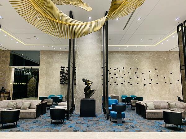飯店大廳非常之寬闊燈光也充足,一進大門就有兩位工作人員服務,問是住宿或餐飲,都會給于協助,出門叫車也會幫忙喔!