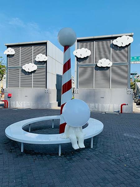 6)亮亮雲&亮亮海安:創作者是林建榮。由燈泡做成一個人靜坐在一燈柱之下,是在沉思嗎?又配上了晴空萬里的藍天白雲。是個非常小可愛的裝飾藝術。
