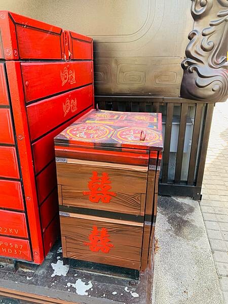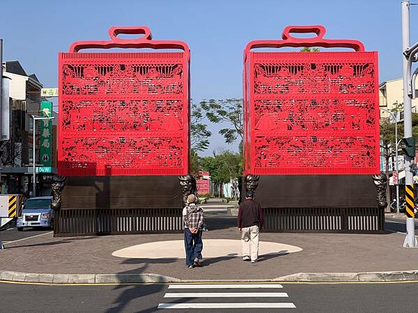 3)開啟幸福的囍門:創作者是台南大學林美吟教授。這是一個非常懷舊復古中國式的藝術創作,有早期喜慶會用到的竹籃、提籃,還有兩旁兩個超級大個的大提籃擺設。非常喜氣的氣氛。走過去時就彷彿在穿越一道幸福之門。