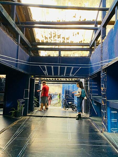 必拍打卡,也最受人矚目的作品就是重生以後的藍晒圖,一間3D立體多層次的空間,無論在烈日當空大太陽下、或在夕陽下、甚至夜晚上打燈後的它都有它的美麗。