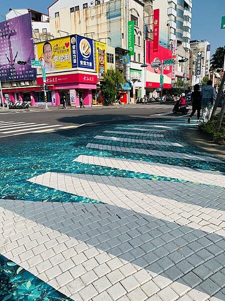 4)Runway:創作者是陳彥旭。這個3D透視彩繪作品「Runway」就讓人走在上面好像踩在天空萬里行空的斑馬線上一樣。