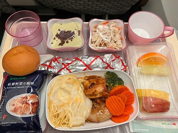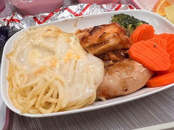 久違的飛機餐點,今天選了烤雞胸肉加白醬意麵,公主有點餓了,都有吃完,不可以說很好吃,但,想念的飛機餐呵呵