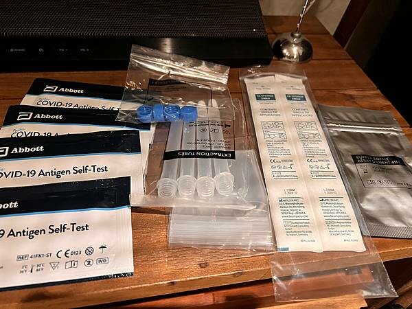台灣政府贈送的禮物:4個Panbio快篩(下圖有拆開包裝後的快篩)