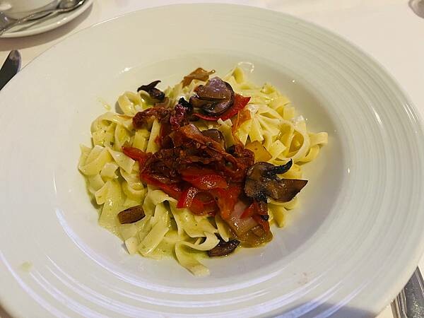 公主吃了幾餐主餐廳的食物,早餐部分還不錯,風景很美也比較悠閒跟幽靜的享用早餐。至於晚餐,公主真的無法給予高評價,公主不挑食,除了前菜跟甜點都在中等評價中,主餐真的是「不好吃」,pasta或炒麵的麵都是軟軟的,沒嚼勁也沒qq口感,宮保雞丁也沒宮保四川味道,魚的口感也不好吃,基本上所有的主餐味道都不夠味。公主也是很直接的反應給餐廳部的服務部人員,希望會有所改進。