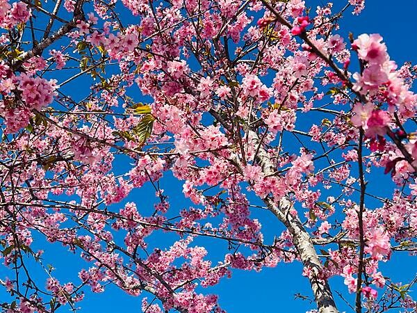 一路暢順的開車來到阿里山的隙頂觀景平台,一眼望去,就是50多棵盛開的河津櫻,天氣又好好,藍藍的天空,配上這些盛開的粉色櫻花,很有農曆新年走春的節湊。雖然這裡的櫻花樹不多,但,當一起盛開時,就是相當的壯觀,會讓人突然眼前一亮,哇一聲的感覺