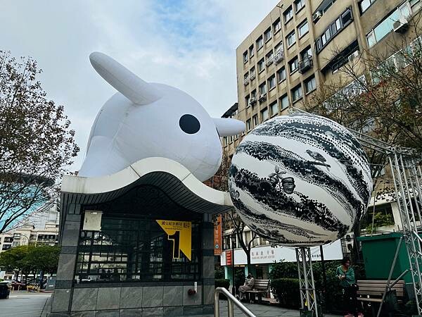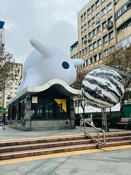 中央展區。國父紀念館站1號口,光兔現蹤。光兔是由日裔巴西籍藝術家大岩奧斯卡Oscar Oiwa將以往他的「光兔」作品重新演繹、這也是他首次親自為台灣創作的大型作品