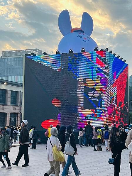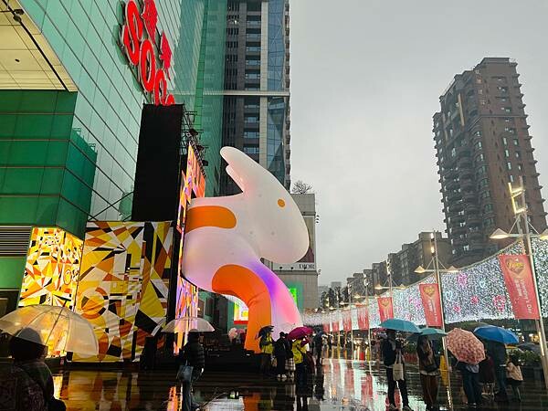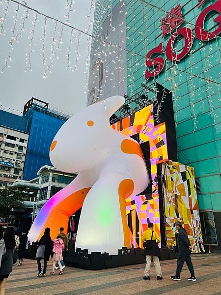 光展區。Sogo忠孝館,是由藝術家吳麒創作的大型充氣裝置藝術《Hi Hide》,是以活潑小兔子營造歡樂的購物氣氛