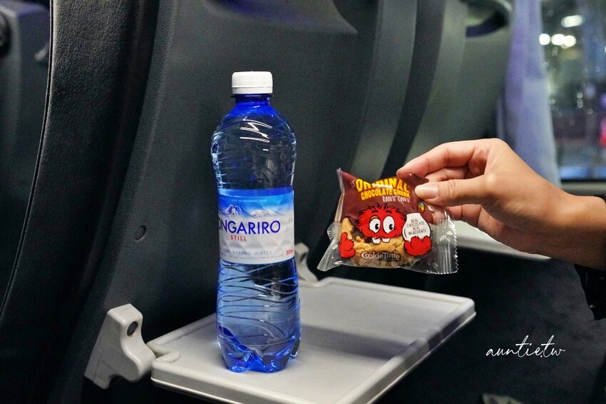報到之後身上貼上GreatSights的辨識貼紙,工作人員還會送上一人一瓶礦泉水以及紐西蘭知名的Cookie Time餅乾當小點心,沿路上司機會介紹行程以及經過的景點介紹,第一站先往懷托摩螢火蟲洞出發!