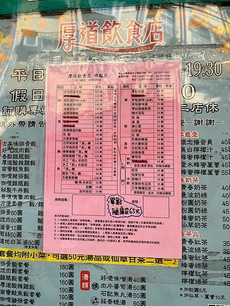 走了很久,下午熱的很,就選擇了厚道吃古早味排骨飯再加點個冬瓜茶解渴(附上菜單)