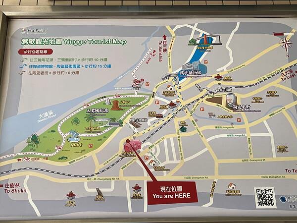 抵達鶯歌站,出站後,在車站的地圖上看看自己目前的位置所在