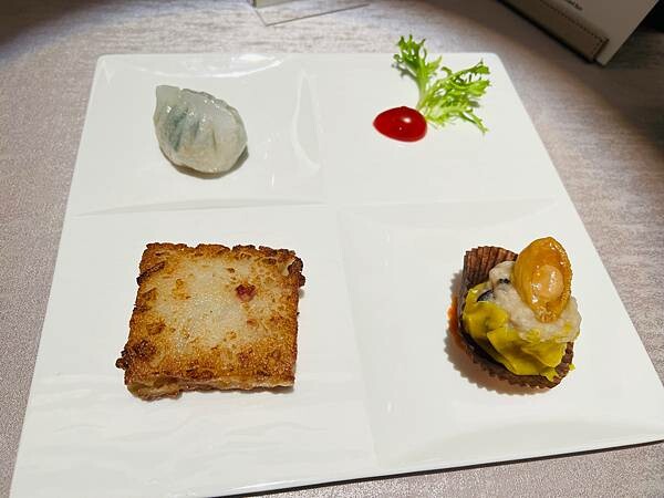 以下的餐點都是午間套餐裡的菜餚精選點心三拼